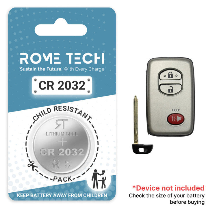 Toyota Venza 2009-2016 Key Fob batteries are the highest-quality lithium-ion batteries on the market. High power ensures efficient operation and long service life of up to 10 years. Quality, efficiency, and reliability are the main principles that guide us in producing our products. All Rome Tech batteries come with MSDS, UN38.3, and other certifications.