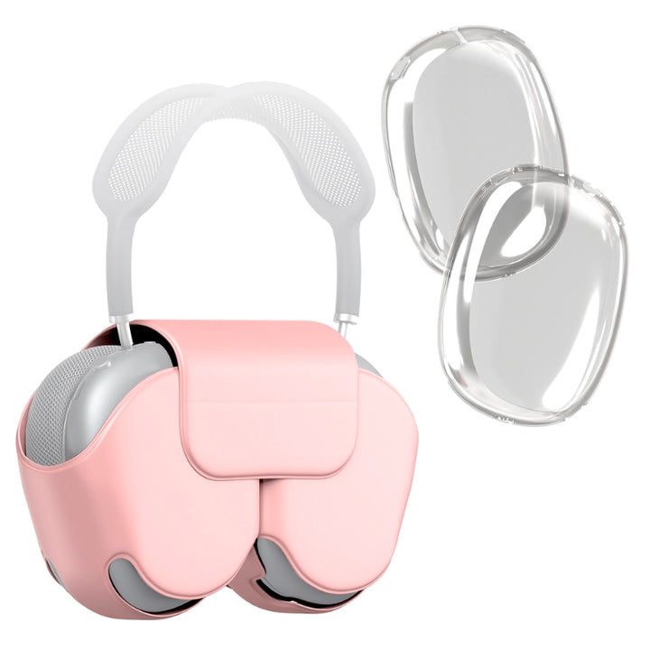 Leather Protective Shockproof Cover Case for Headphones Airpods Max + 1 Pair Transparent TPU Shells