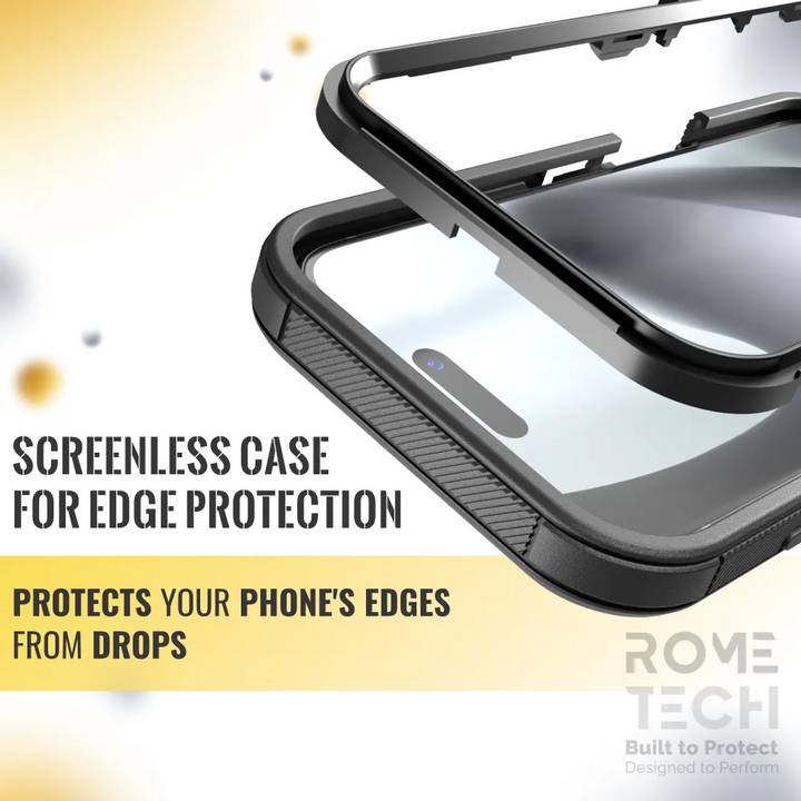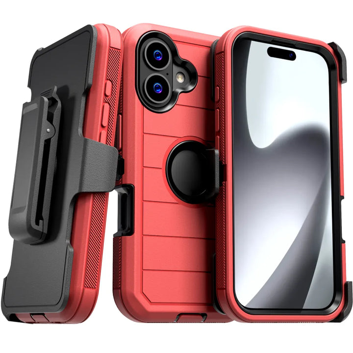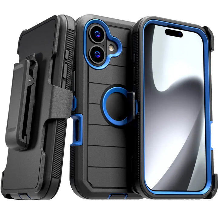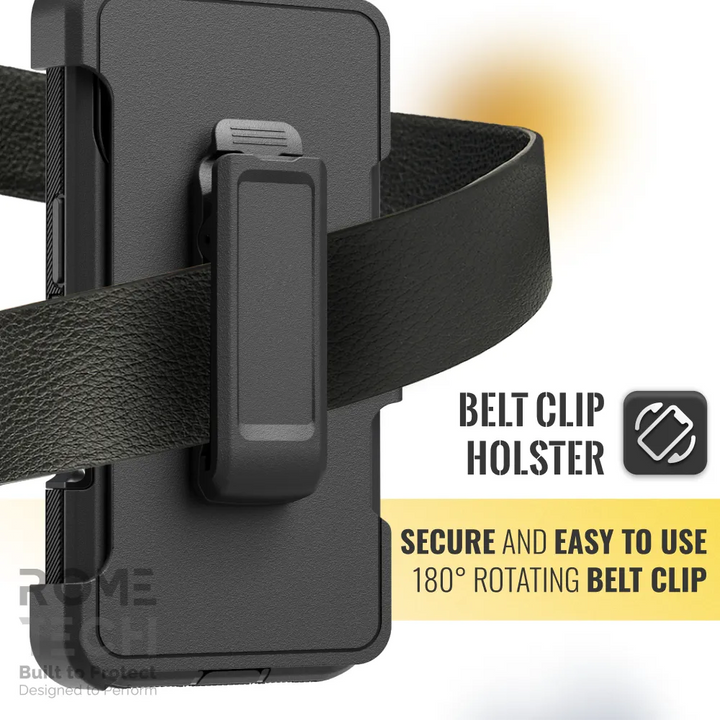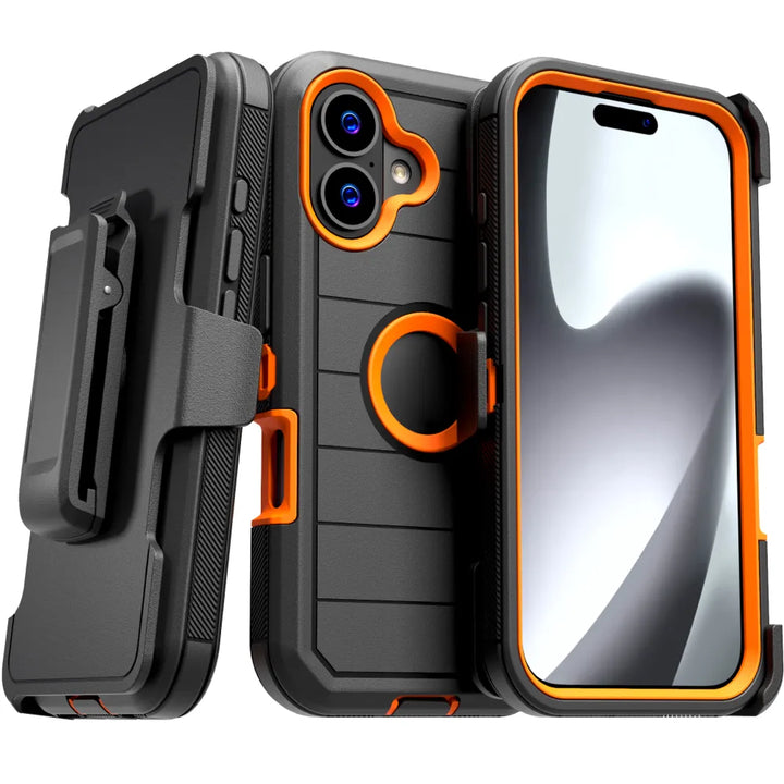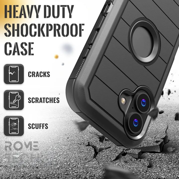 Protective Cases for Apple iPhone 17 a is four layers of 360-degree heavy-duty shockproof protection. Our defender case is made out of durable materials with a hard polycarbonate inner shell and soft outer rubber layer. Raised beveled edge keeps your touchscreen safe from scratches. A 360-degree swivel belt clip also functions as a kickstand with different viewing angles perfect for video calls and media playback. Defender case also have easy access to the charging port, buttons, sensors, and camera. Built-in port covers offer protection from dust, dirt, and other elements, making it ideal for commercial use. Rome Tech's Defender case multi-layer design offers rugged drop protection ideal for outdoor adventures, sports, hiking and guards your device against scrapes, bumps, dirt, and dust.