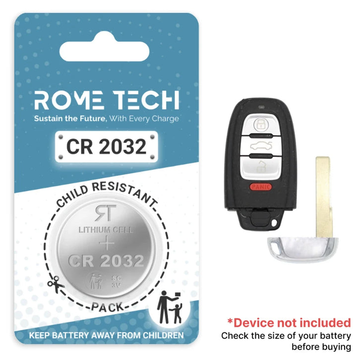Audi A8 2013-2016 Key Fob batteries are the highest-quality lithium-ion batteries on the market. High power ensures efficient operation and long service life of up to 10 years. Quality, efficiency, and reliability are the main principles that guide us in producing our products. All Rome Tech batteries come with MSDS, UN38.3, and other certifications.