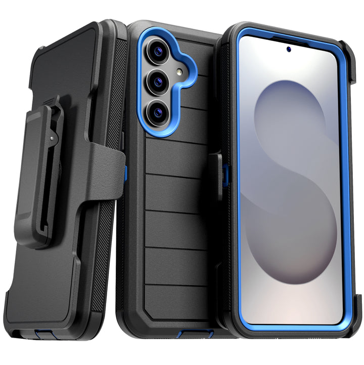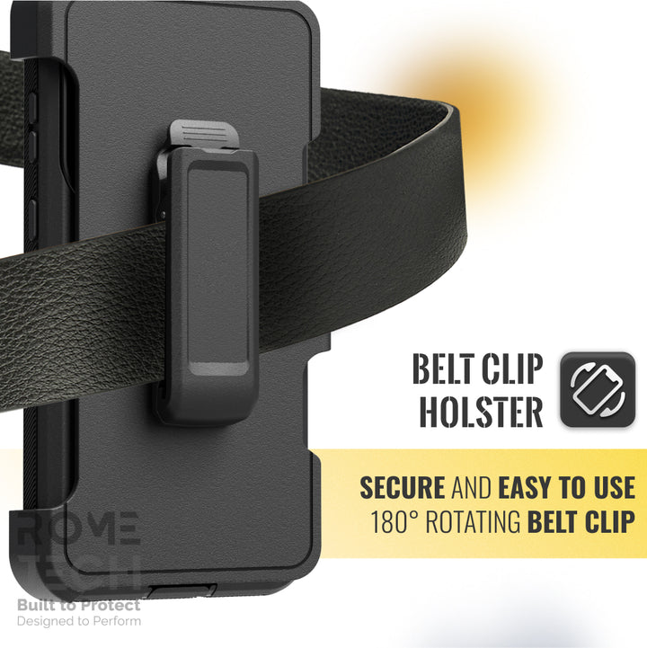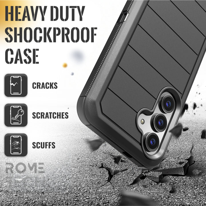 Protective Cases for Samsung Galaxy S25 FE a is four layers of 360-degree heavy-duty shockproof protection. Our defender case is made out of durable materials with a hard polycarbonate inner shell and soft outer rubber layer. Raised beveled edge keeps your touchscreen safe from scratches. A 360-degree swivel belt clip also functions as a kickstand with different viewing angles perfect for video calls and media playback. Defender case also have easy access to the charging port, buttons, sensors, and camera. Built-in port covers offer protection from dust, dirt, and other elements, making it ideal for commercial use. Rome Tech's Defender case multi-layer design offers rugged drop protection ideal for outdoor adventures, sports, hiking and guards your device against scrapes, bumps, dirt, and dust.
