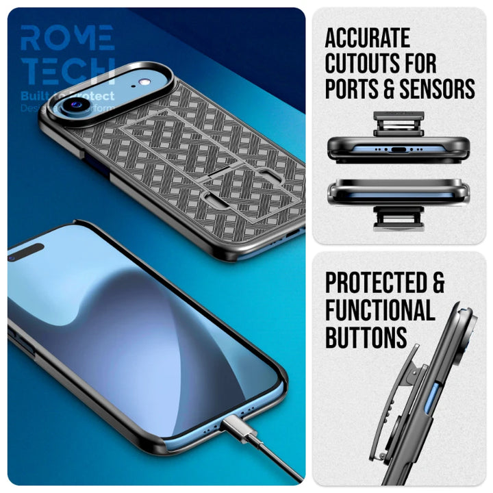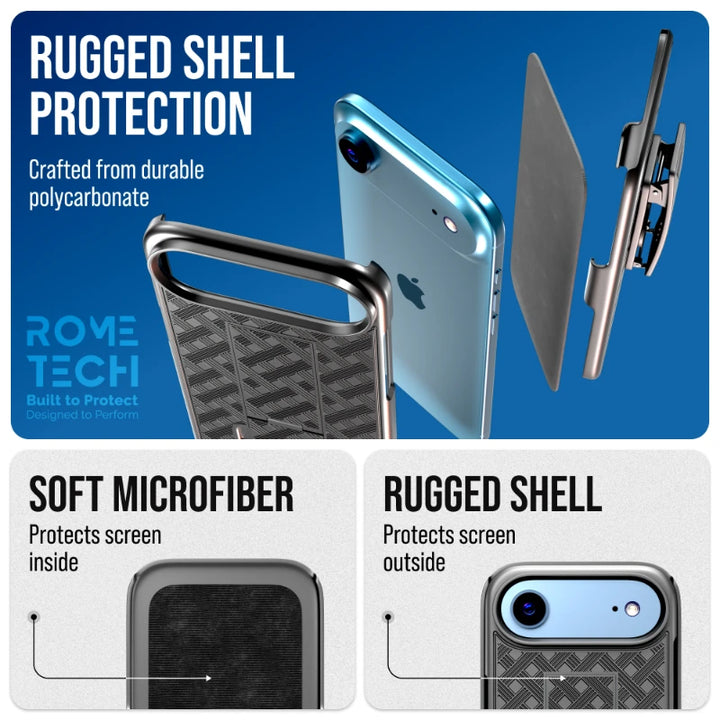 Rome Tech's Apple iPhone 17 Air case with belt clip offers reliable phone protection with its superior craftsmanship and high-quality materials. Meticulously manufactured, the case provides excellent defense against scratches, impacts, and other potential damage. With its combination of quality materials and stylish aesthetics, Rome Tech ensures that your device is not only protected but also looks great.