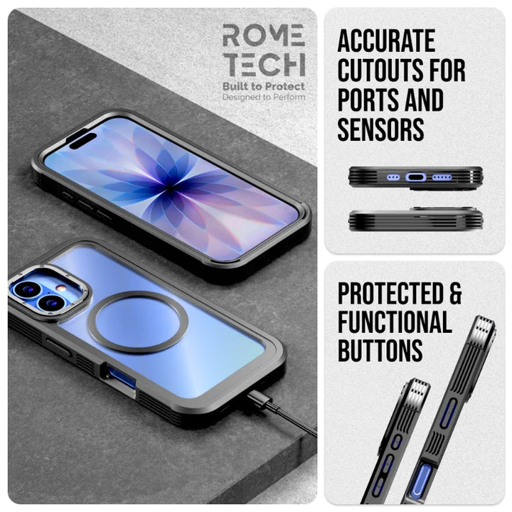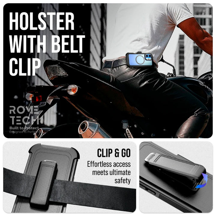 Protective Cases for Apple iPhone 17 a is four layers of 360-degree heavy-duty shockproof protection. Our defender case is made out of durable materials with a hard polycarbonate inner shell and soft outer rubber layer. Raised beveled edge keeps your touchscreen safe from scratches. A 360-degree swivel belt clip also functions as a kickstand with different viewing angles perfect for video calls and media playback. Defender case also have easy access to the charging port, buttons, sensors, and camera. Built-in port covers offer protection from dust, dirt, and other elements, making it ideal for commercial use. Rome Tech's Defender case multi-layer design offers rugged drop protection ideal for outdoor adventures, sports, hiking and guards your device against scrapes, bumps, dirt, and dust.