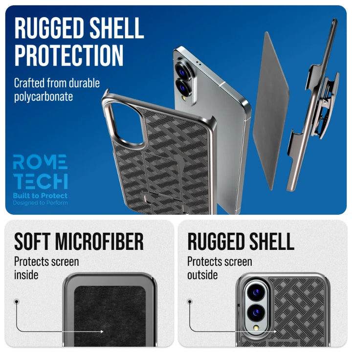 Rome Tech's Samsung Galaxy S25 Edge case with belt clip offers reliable phone protection with its superior craftsmanship and high-quality materials. Meticulously manufactured, the case provides excellent defense against scratches, impacts, and other potential damage. With its combination of quality materials and stylish aesthetics, Rome Tech ensures that your device is not only protected but also looks great.